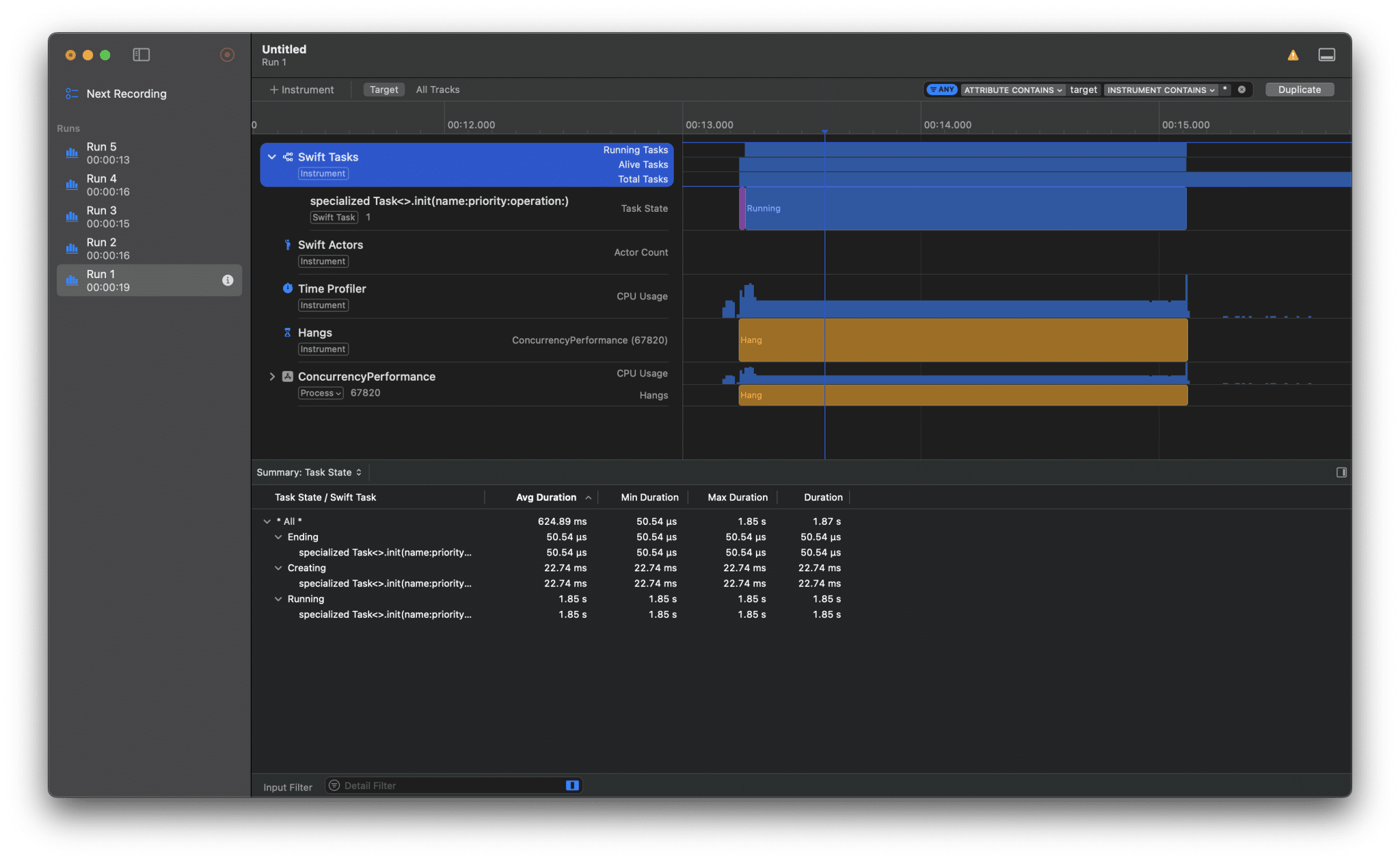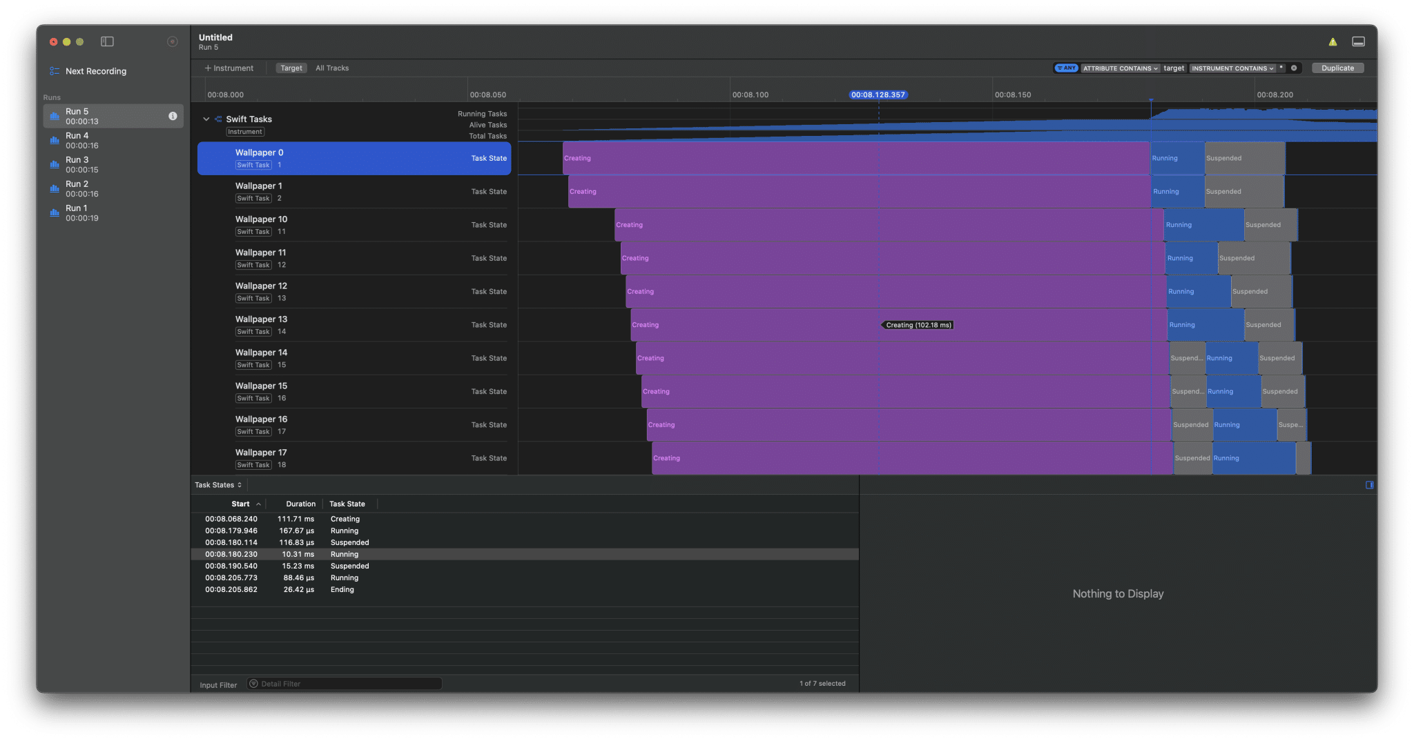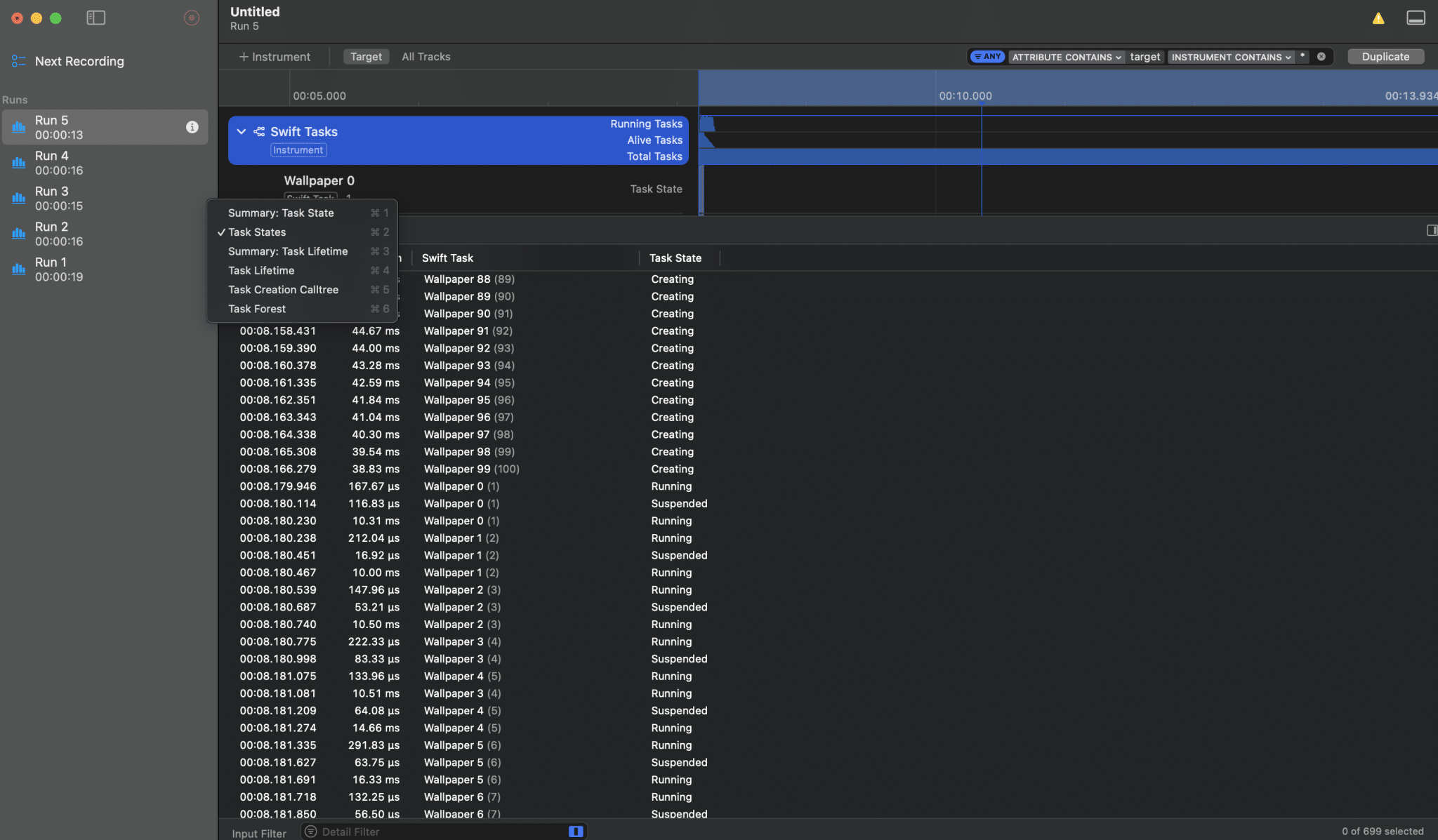 If we go back into instruments, it’s interesting to see the new task states: